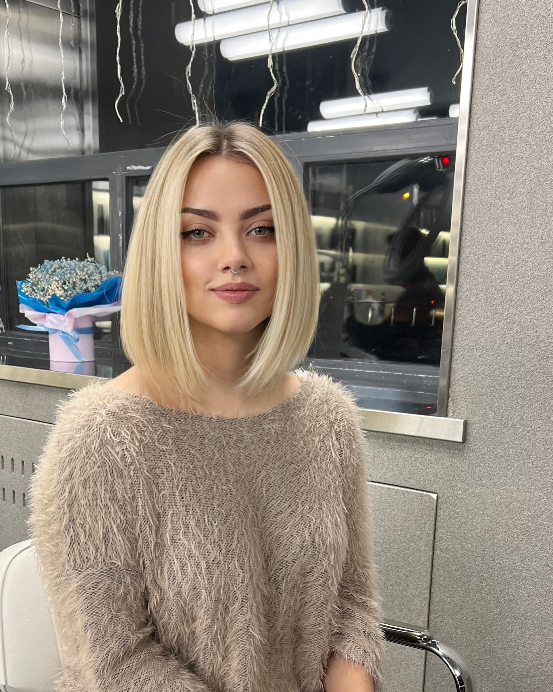 Яскравий блонд на стрижці Каре, зі збереженням глибини у коренів – це завжди гарна ідея. Важливо вдало підібрати тон, щоб фарбування ідеально пасувало саме тобі! Для цього у нас є індивідуальна консультація зі стилістом чи з дизайнером)