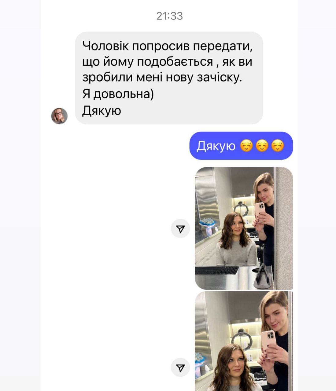 Наші стилісти-колористи вміло забезпечують коректну комунікацію (ми практикуємо small-talks), чистоту робочого місця та увагу до потреб клієнта в процесі роботи.