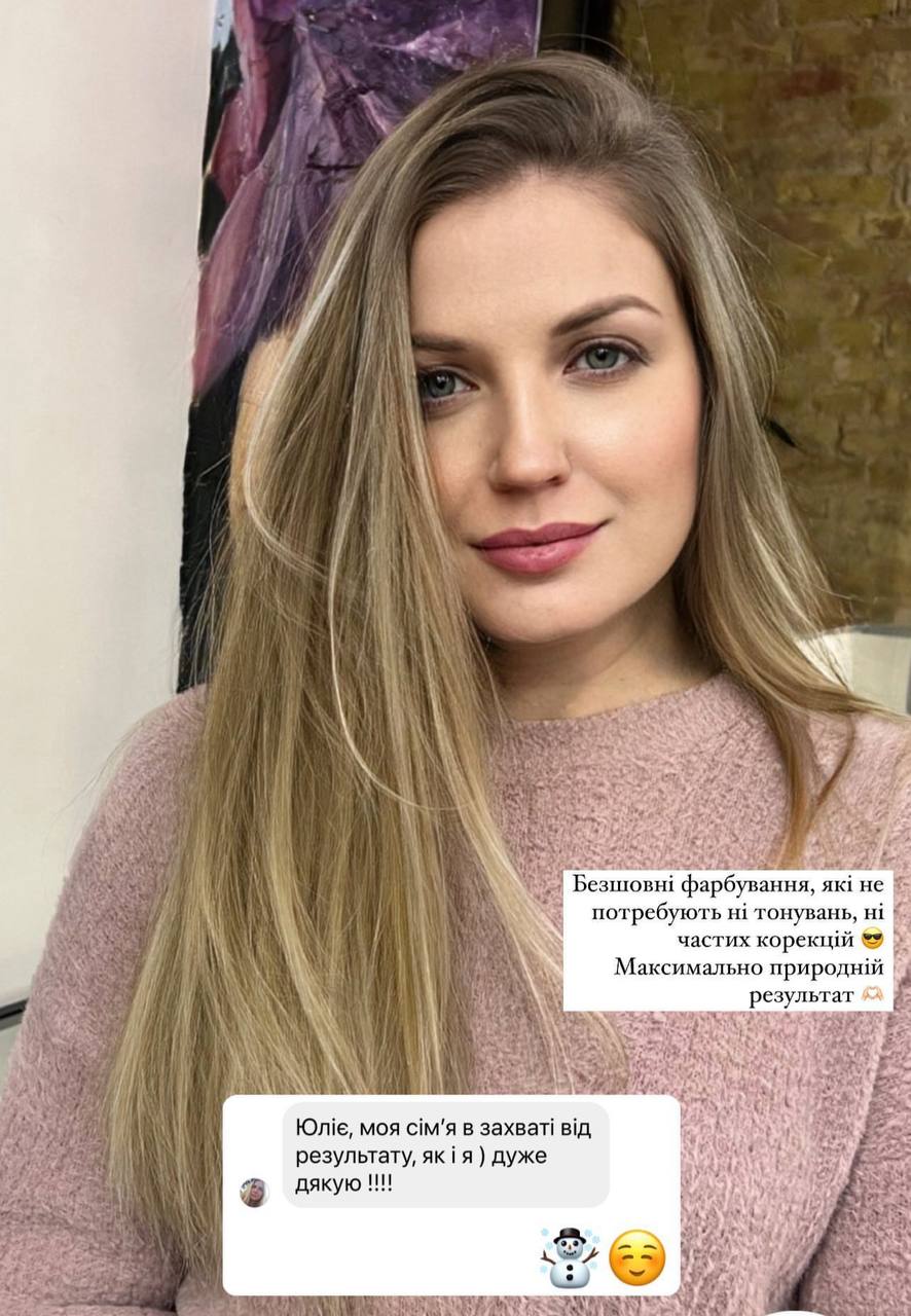 Вибір хорошого майстра – непросте завдання. Вміння гарно робити фото для портфоліо ще не означає, що майстер дійсно володіє технологією фарбування. Саме тому я ретельно підбираю фахівців до своєї команди, орієнтуючись на їхні знання, досвід і технічну точність. Адже якісний результат залежить не лише від творчого бачення, а й від правильно вибудованої технології роботи”